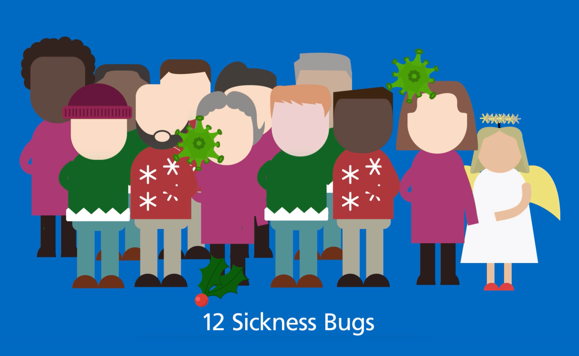 This was then styled and reworked around the carol, The Twelve Days of Christmas (“Through the twelve days of Christmas we saw in A&E: Twelve sickness bugs, Eleven chesty coughs, Ten broken nails…”)